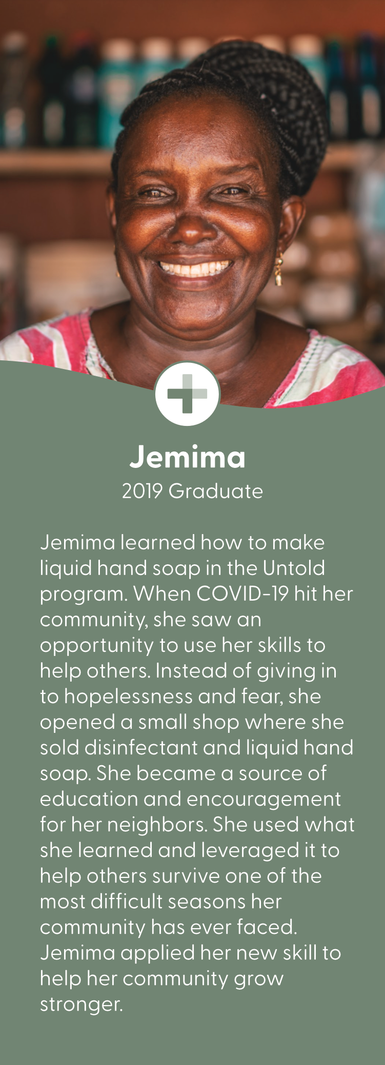 By the end of 2027, we will embrace and equip 100,000 men and women living with HIV/AIDS through our nine-month integrated program, transforming our clients’ physical, emotional, economic, and spiritual health and positively impacting families and communities.