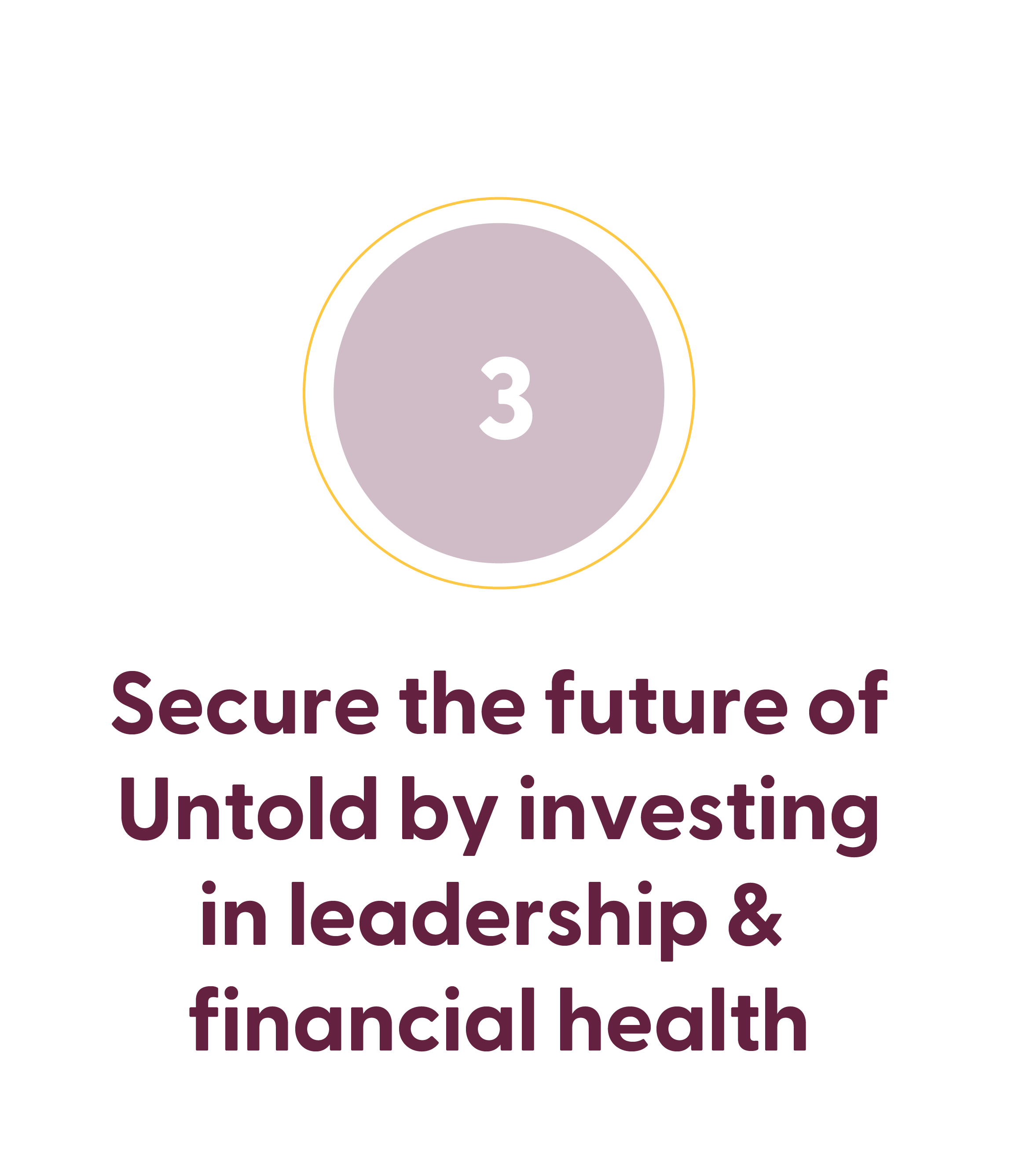 A big part of this campaign is preparing for the future of Untold. Some of these initiatives may not bear fruit in this three-year plan but will secure the future of Untold for the next decade and beyond.